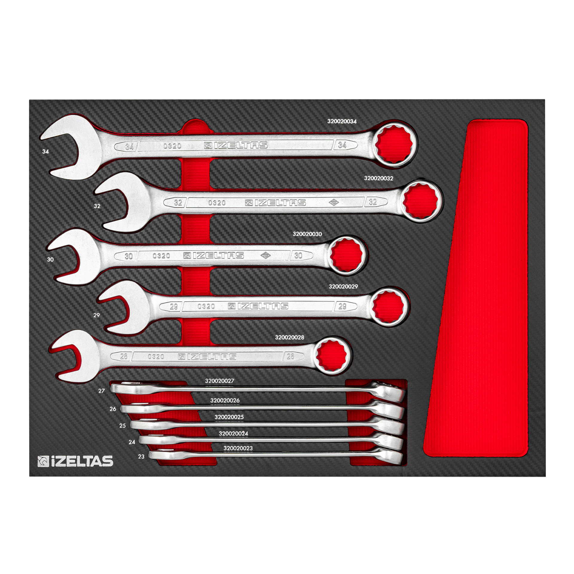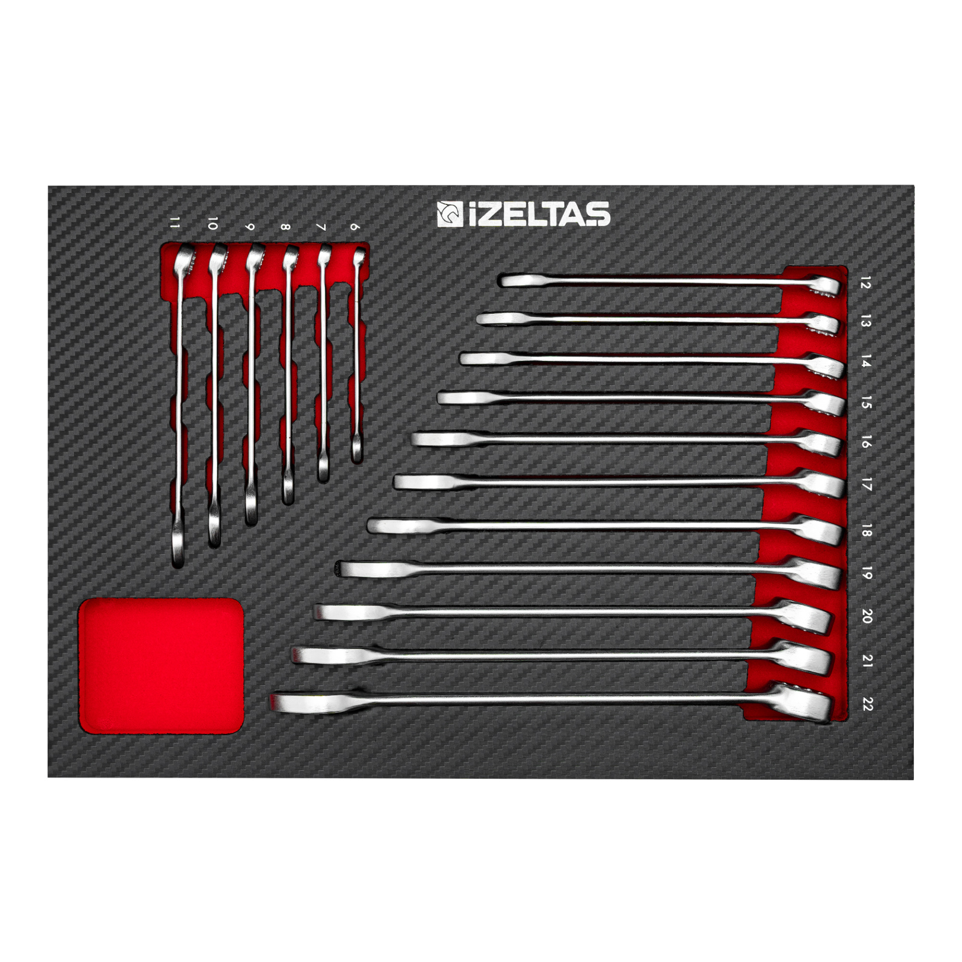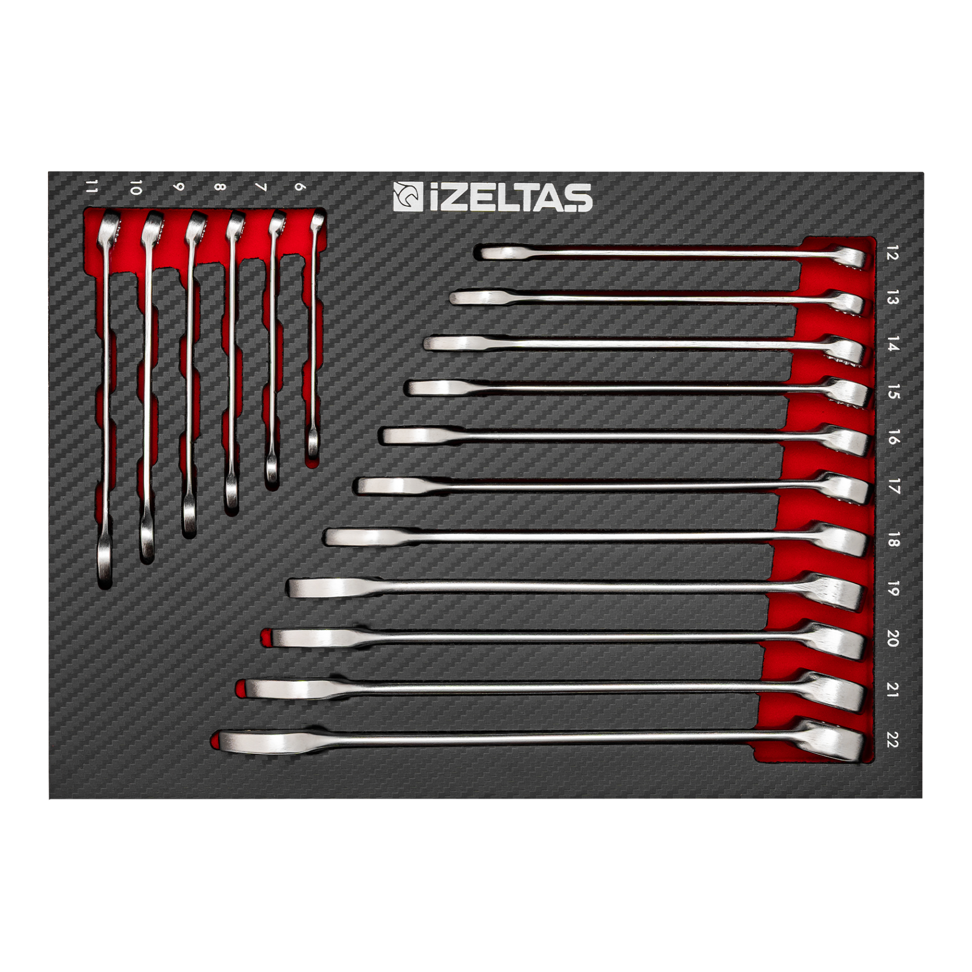 Набор комбинированных ключей 6-22 в ложементе карбон 17 предметов, габариты 250х3505х30, IZELTAS