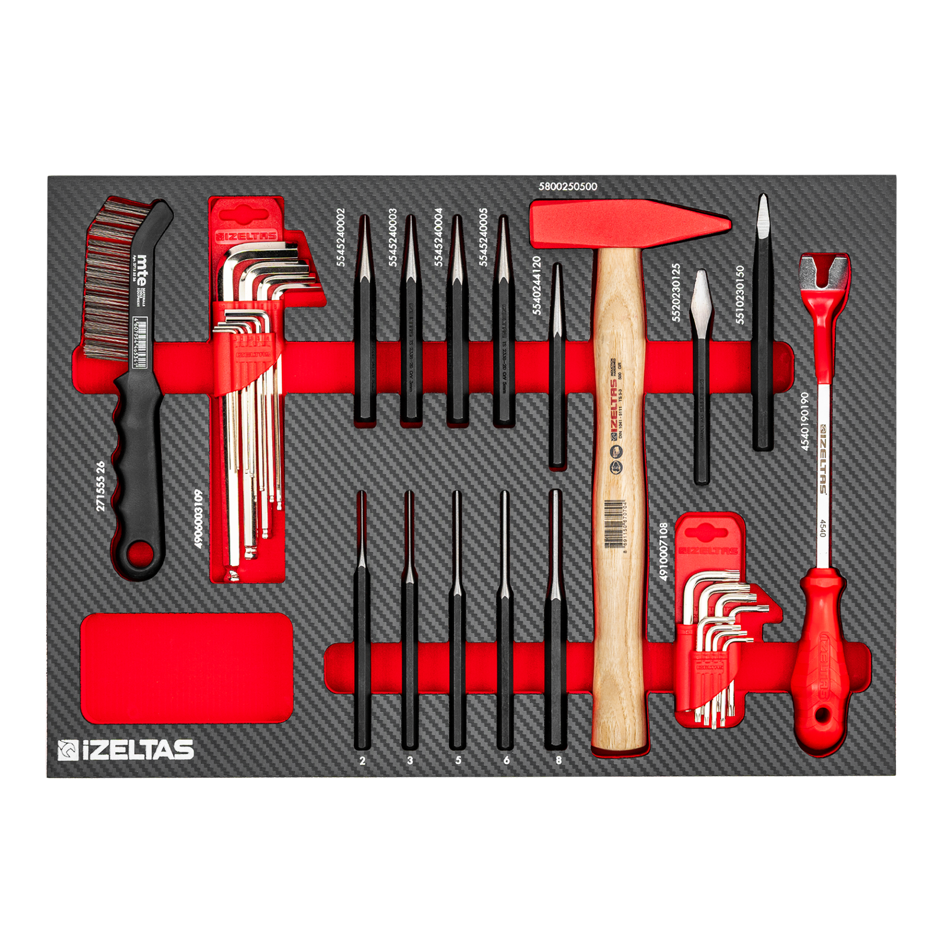 Набор ударного инструмента в ложементе карбон 500x350х30мм 17 предметов IZELTAS
