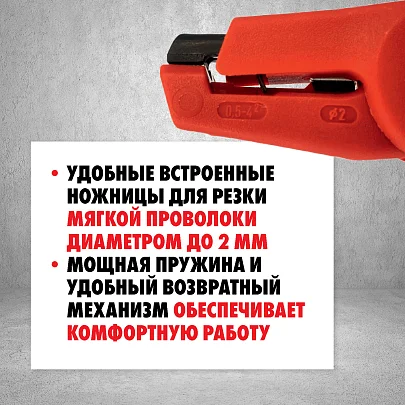 Стриппер оснащен встроенными ножницами для резки мягкой проволоки диаметром до 2 мм.