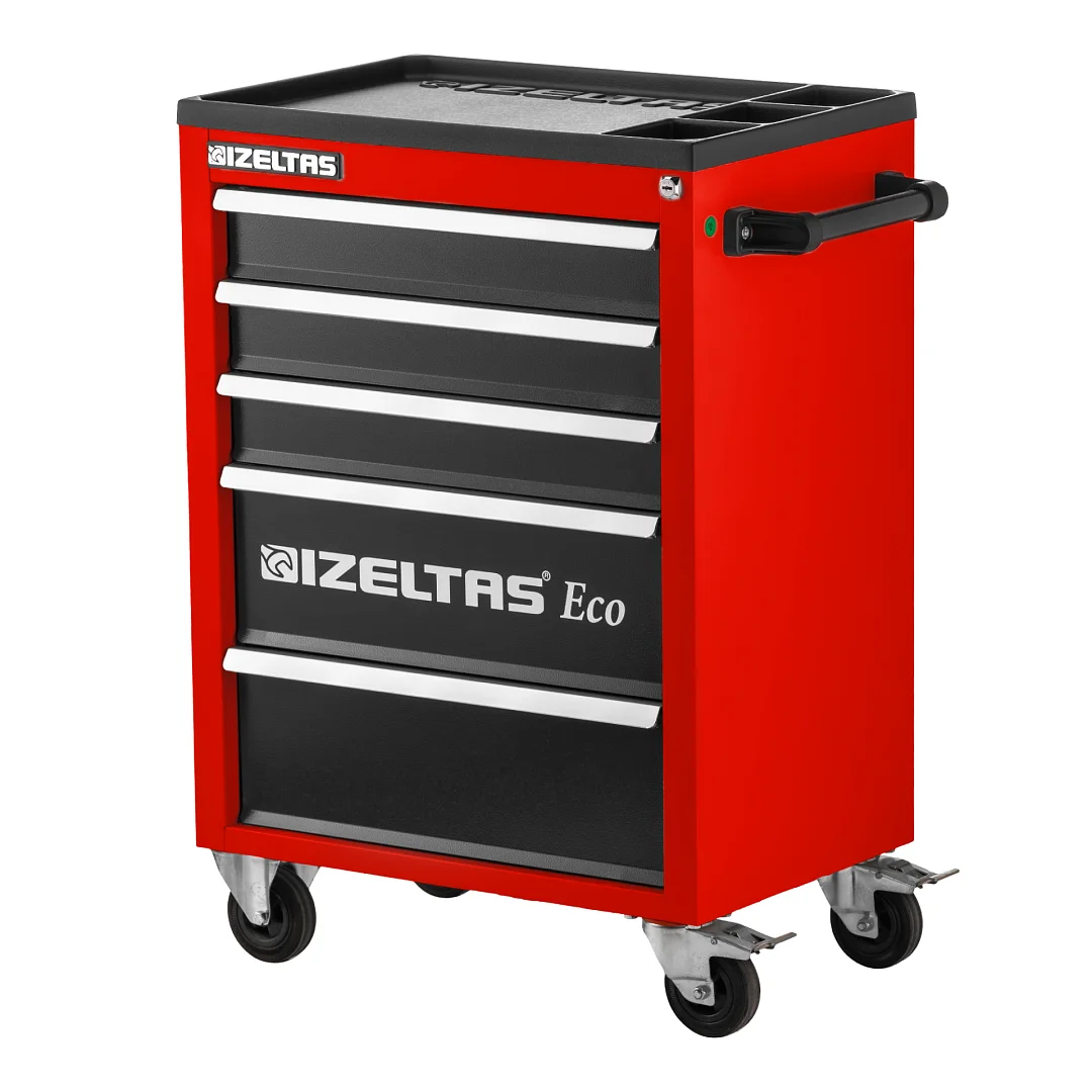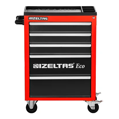 Тележка инструментальная серии ECO с набором инструментов 93 предмета, 5 выдвижных ящиков, красно-черный, IZELTAS, 8243001096, 13000002440