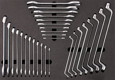 - Восемь накидных изогнутых двухсторонних ключей: