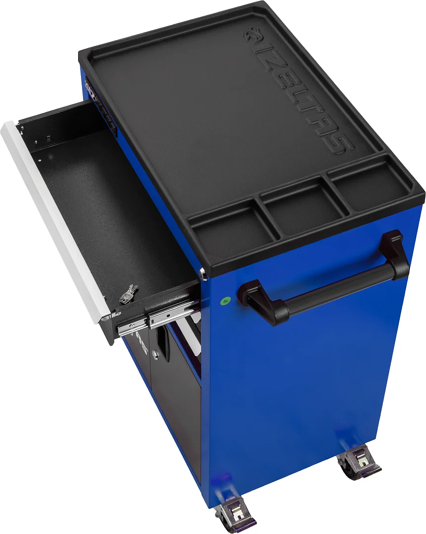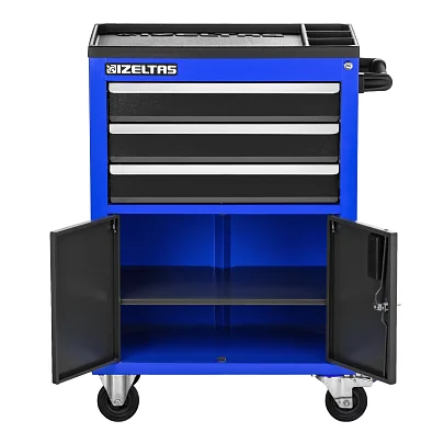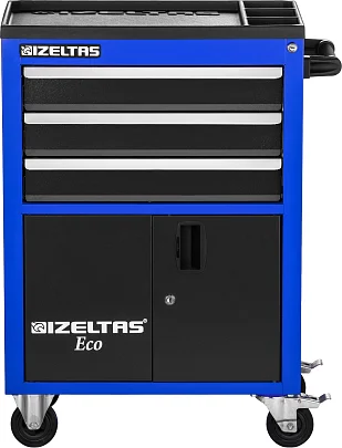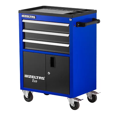 Тележка инструментальная серии ECO с набором инструментов 93 предмета, 3 выдвижных ящика, отделение с распашными дверцами, - сине-черный, IZELTAS, 8243001296, 13000005242