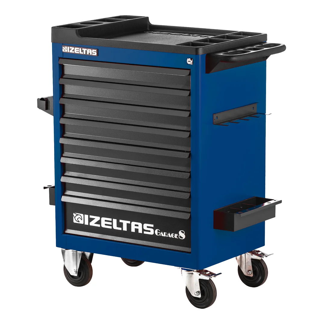 Тележка инструментальная серии GARAGE без инструментов, 8 выдвижных ящиков, цвет сине-черный, IZELTAS, 8242322008/13000002434