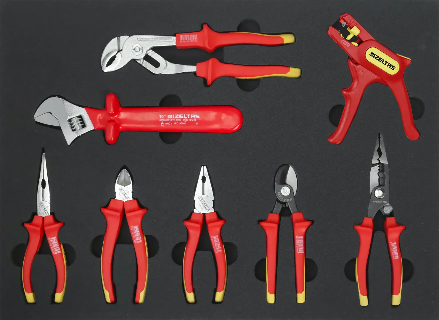 Тележка инструментальная серии ELECTRO с набором инструментов 94 предмета, 7 выдвижных ящиков, красно-черно-желтый, IZELTAS, 13000005548