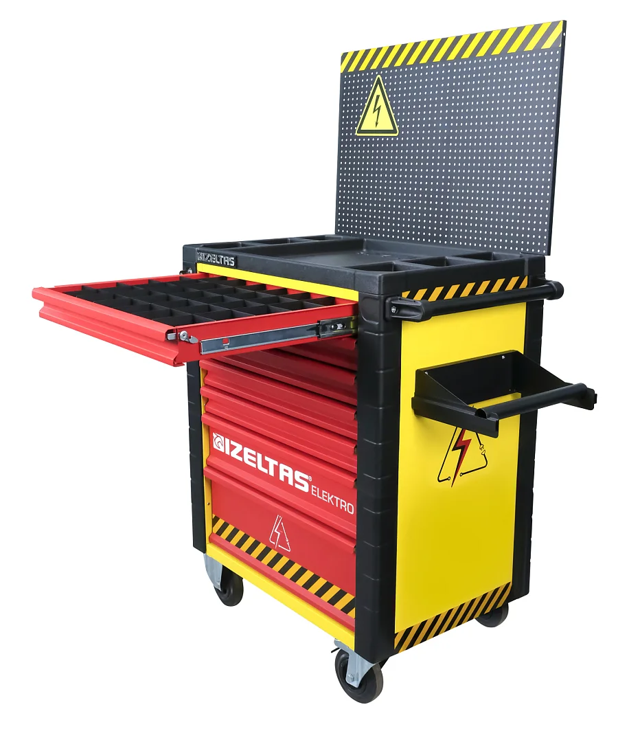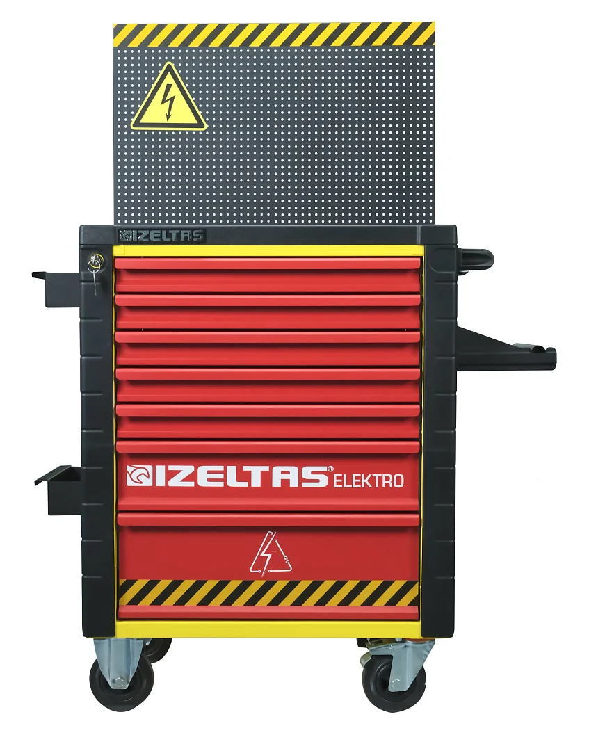 Тележка инструментальная серии Electro без инструментов, 7 выдвижных ящиков, красно-желтый, IZELTAS, 13000005547