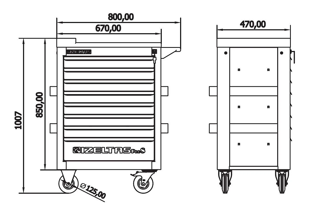 Боковые стенки и задняя панель инструментальной тележки с дополнительными (разнесенными по высоте) креплениями для установки боксов.