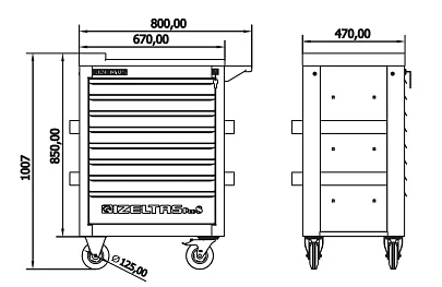 Тележка инструментальная серии PRO без инструментов, 5 выдвижных ящиков, сине-cерый, IZELTAS, 8241322005, 13000002408