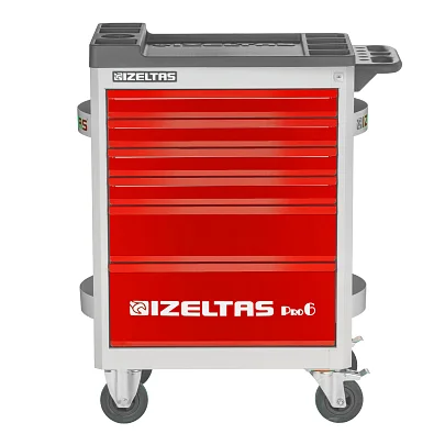 Тележка инструментальная серии PRO без инструментов, 6 выдвижных ящиков, красно-черный, IZELTAS, 8241321006, 13000002402
