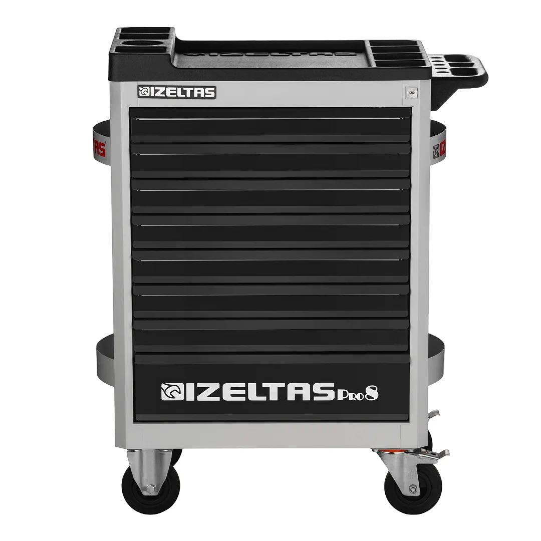 Тележка инструментальная серии PRO с набором инструментов 206 предметов, 8 выдвижных ящиков, серо-черный, IZELTAS, 8241003209, 13000005230