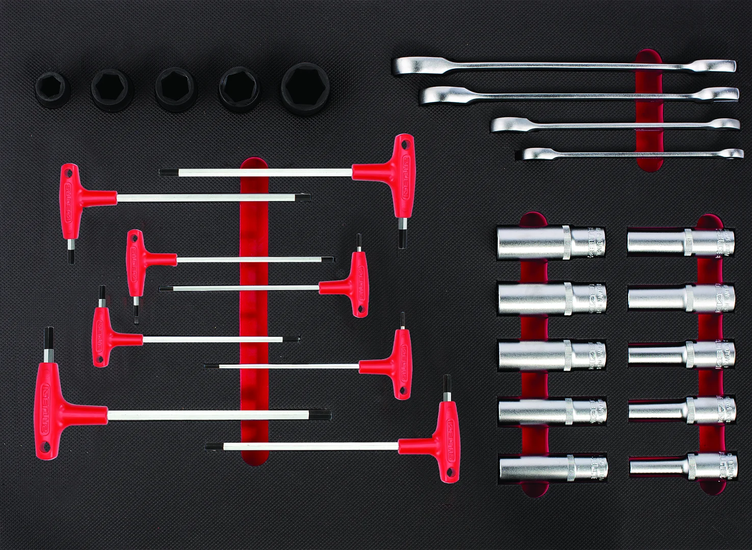 В шести верхних ящиках размещены шесть ложементов с инструментом (206 предметов)
