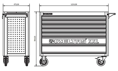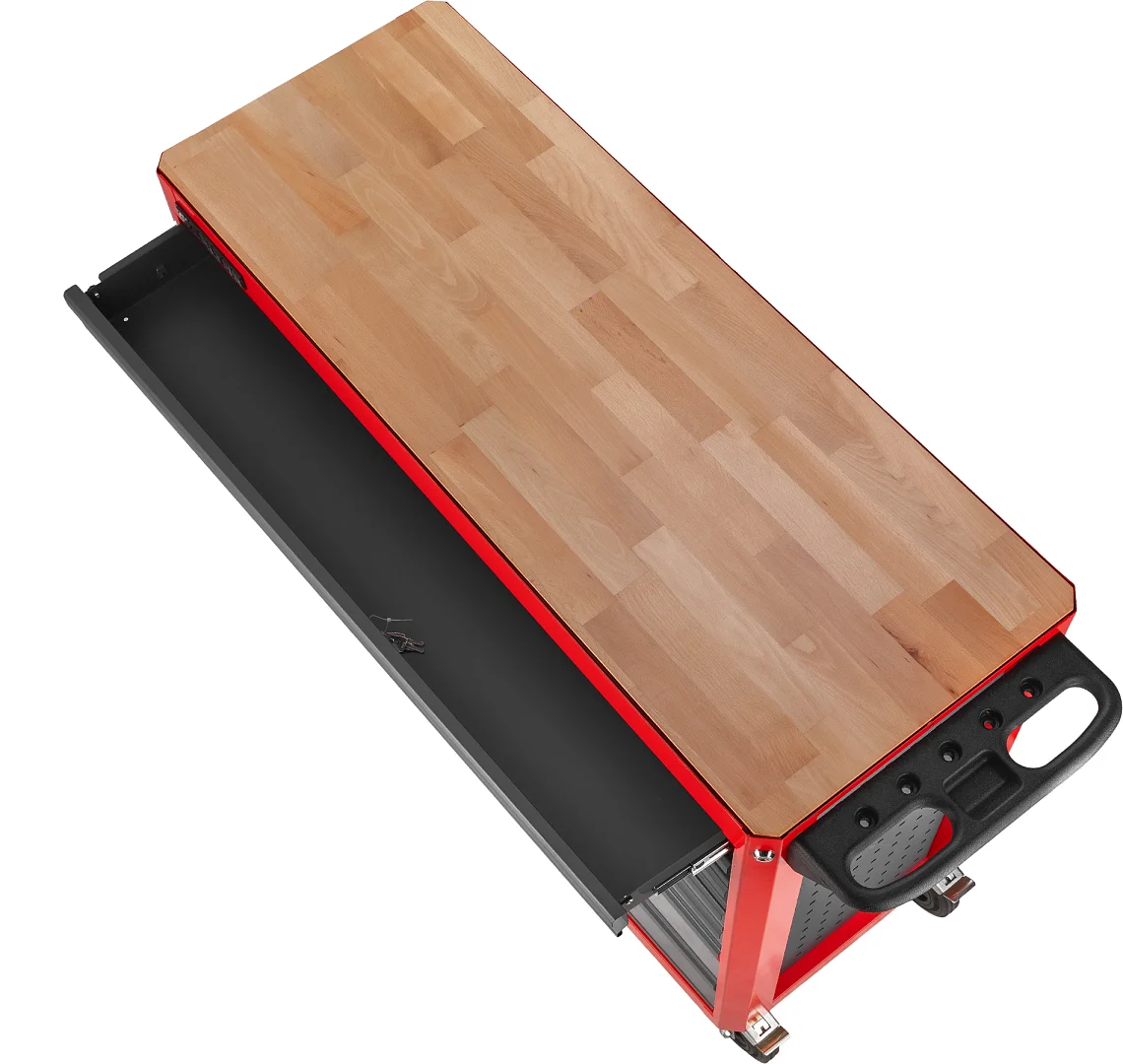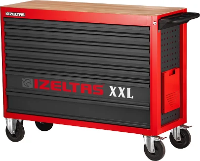 Тележка инструментальная (верстак) серии XXL без инструментов, деревянная столешница, 7 выдвижных ящиков, красно-черный, IZELTAS, 8246321007, 13000002478