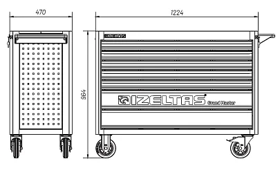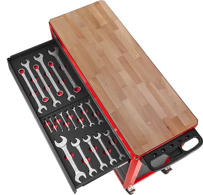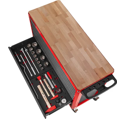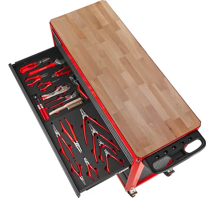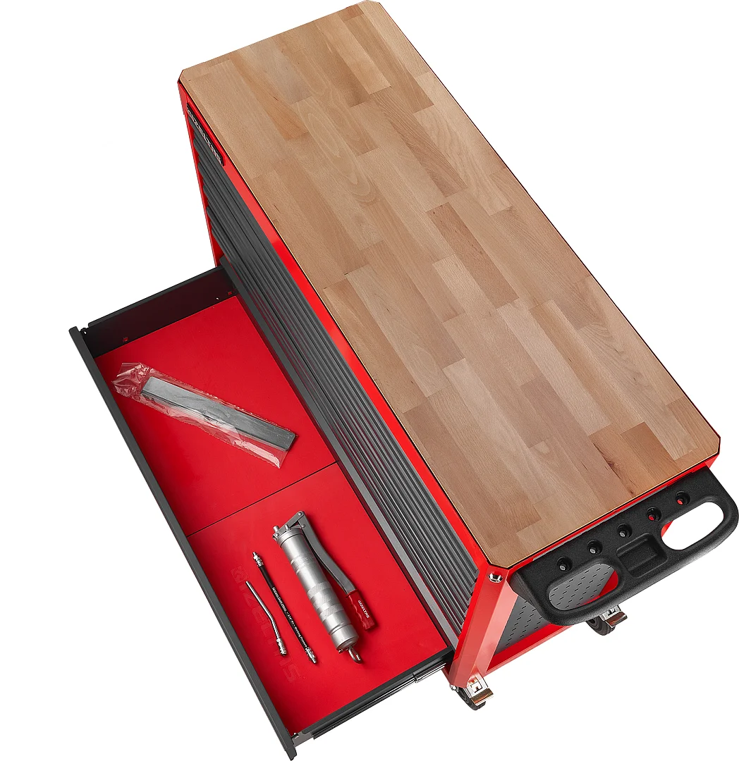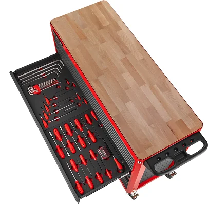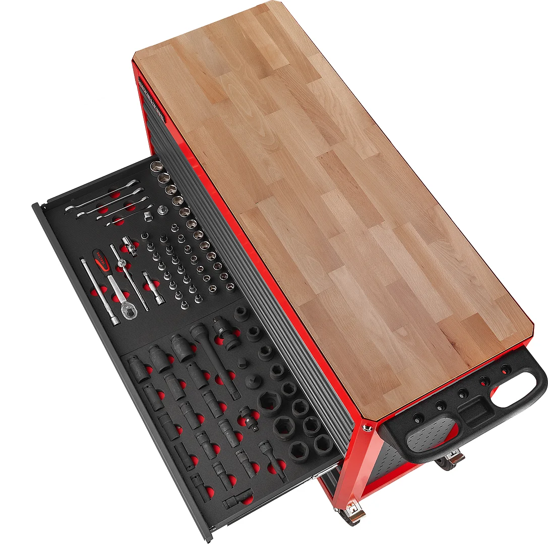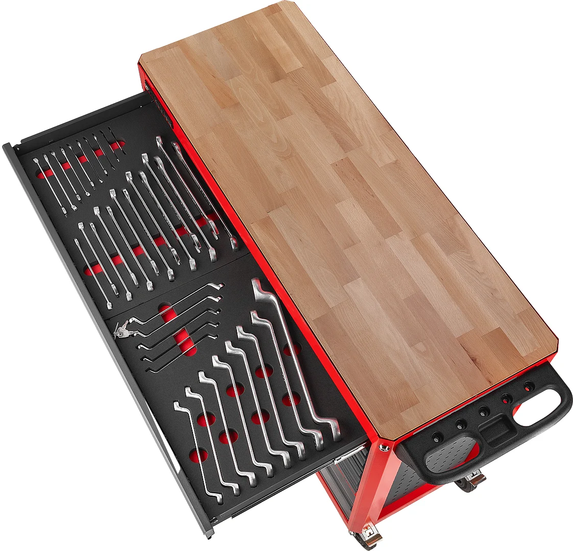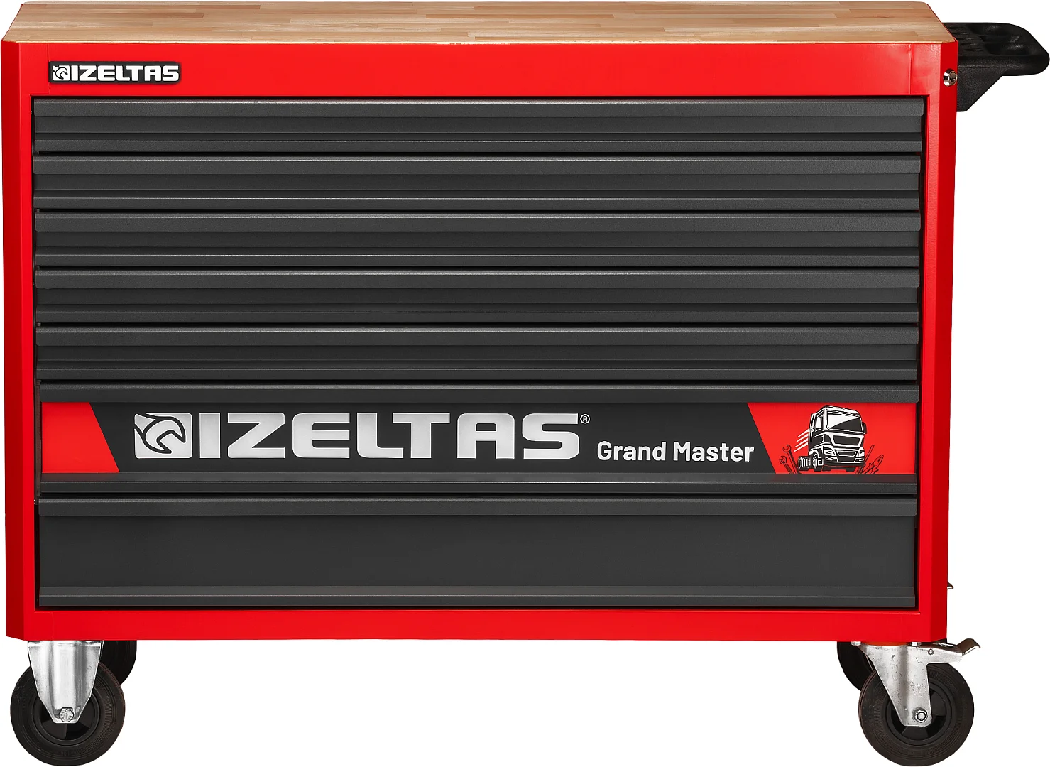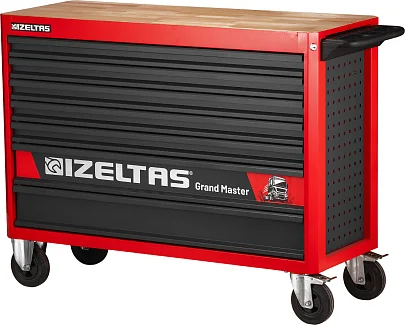 Тележка инструментальная (верстак) серии XXL без инструментов, деревянная столешница, 7 выдвижных ящиков, красно-черный, IZELTAS, 8246321007, 13000002478