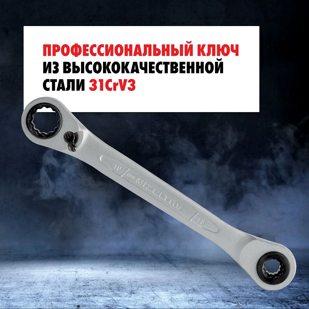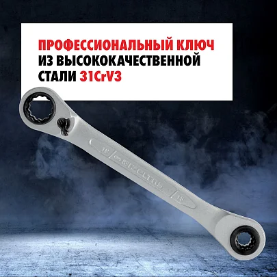 Универсальный трещоточный накидной ключ IZELTAS 4в1.