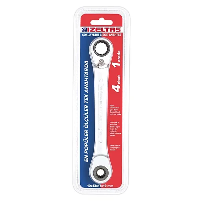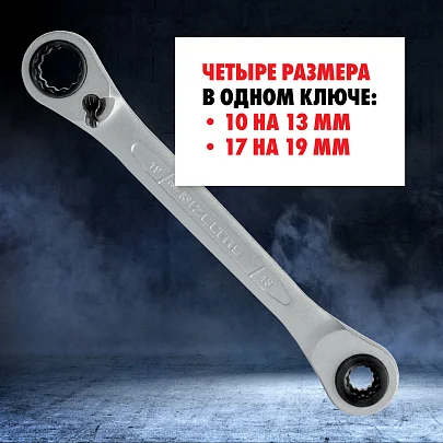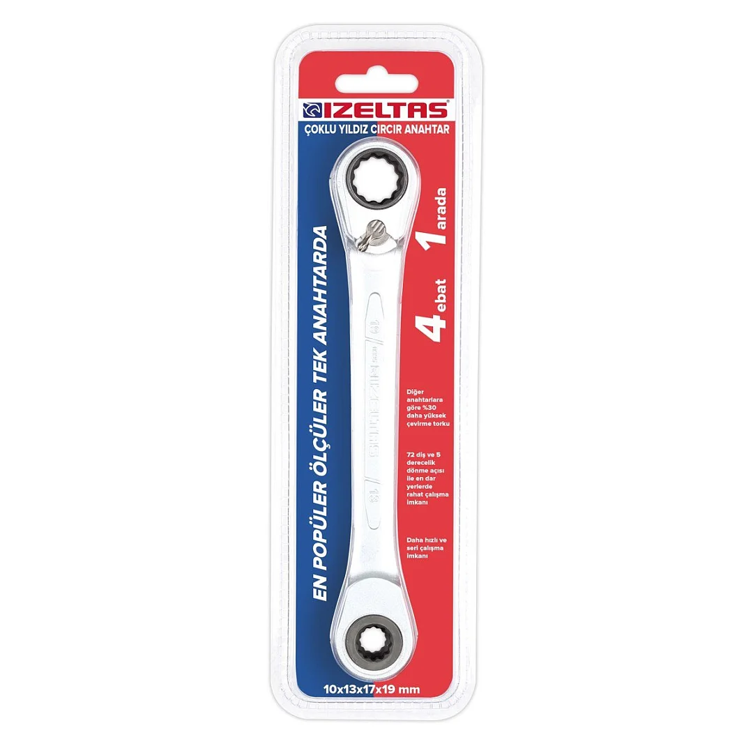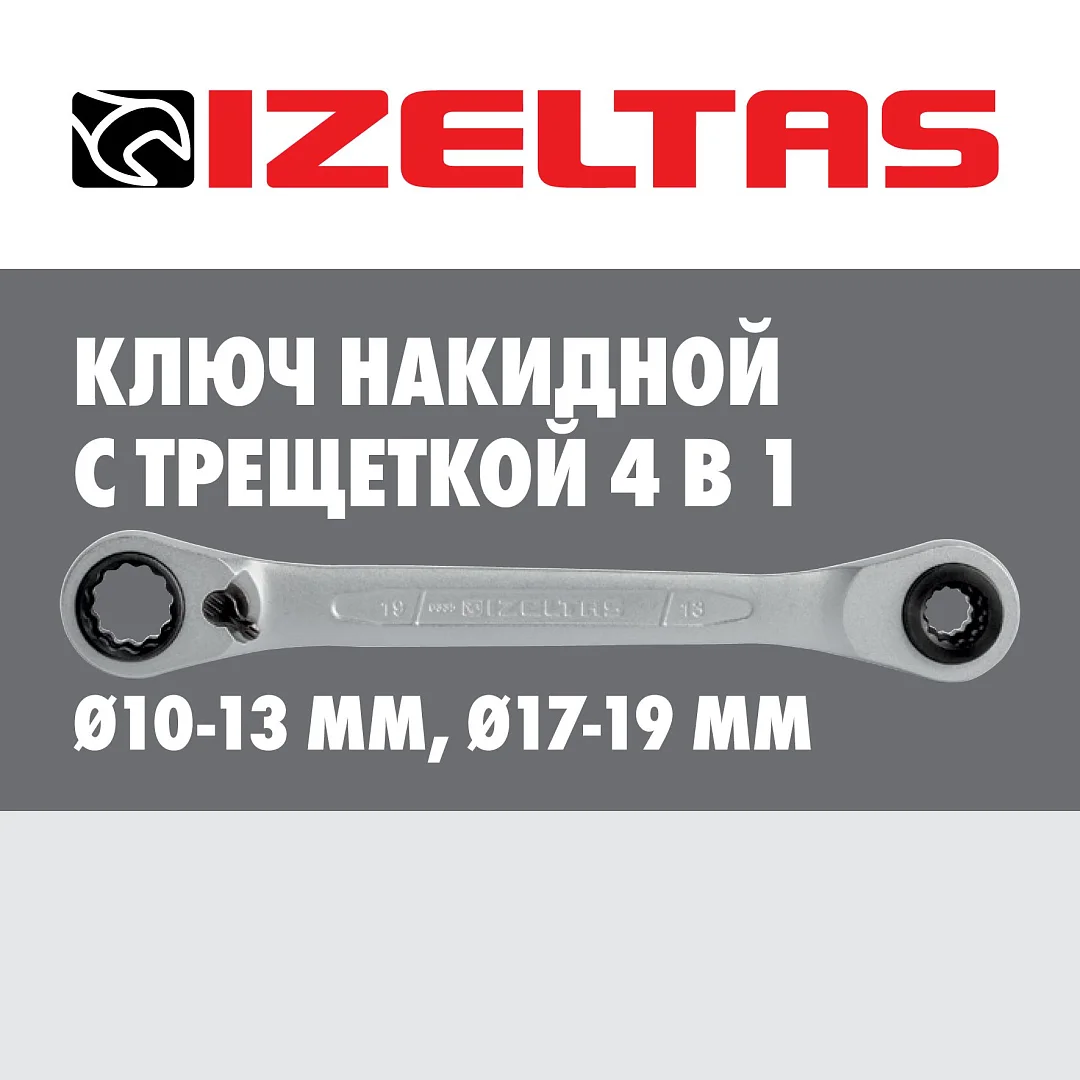 Ключ трещоточный накидной (4 в 1) 10х13x17x19 мм IZELTAS