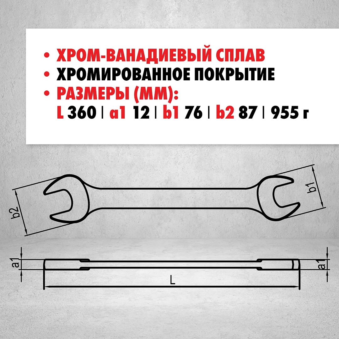 Удлинённый рожковый ключ IZELTAS, двухсторонний 36 мм × 41 мм