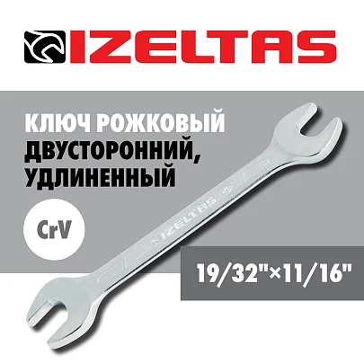 Ключ рожковый удлиненный 19/32"х11/16" IZELTAS