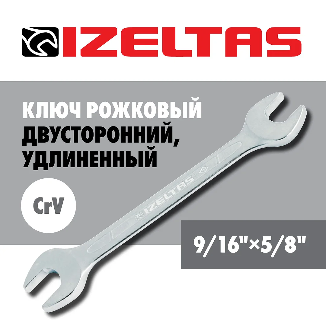 Рожковый ключ IZELTAS дюймовый, удлинённый sae, двухсторонний 9/16 дюйма × 5/8 дюйма