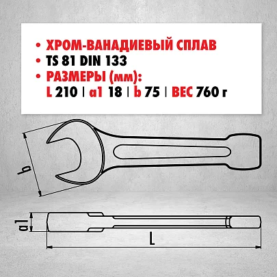 Ударный рожковый ключ IZELTAS, односторонний на 38 мм