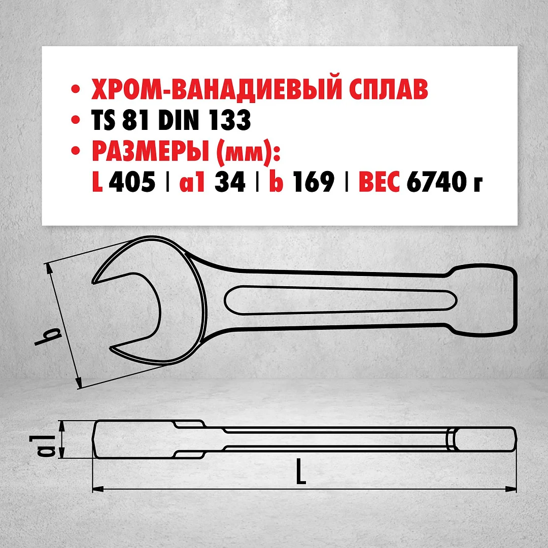 Ударный рожковый ключ IZELTAS, односторонний на 85 мм