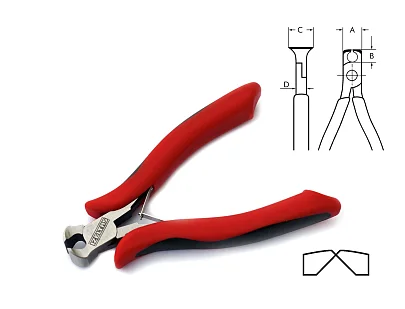 Параметры режима резки: мягкая проволока, Ø мм 2 Параметры режима резки: проволока средней твердости, Ø мм 1 Параметры режима резки: твердая проволока, Ø мм 0.5 Головка Шлифованая Общая Длина, мм 120 Ширина губок (закрытая) - A, мм 15.8 Длина губок - B, мм 9 Длина Режущей кромки - С, мм 13,35 Толщина губок - D, мм 7.6 Ручки 2-х компонентный пластик Вес, г 77