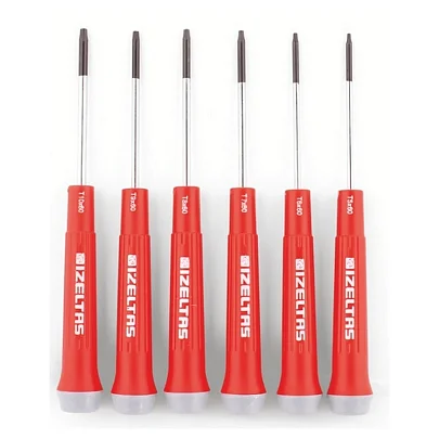 Набор TORX отвёрток для клемм IZELTAS в картонной коробке - Шесть профессиональных отвёрток из высококачественной стали :