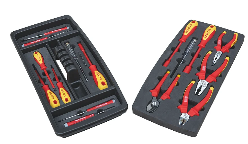 Содержит изолированные (диэлектрические) инструменты с изоляцией, выполненной в соответствии с стандартом IEC 60900 - Работа под напряжением до 1000 В переменного и 1500 В постоянного тока.