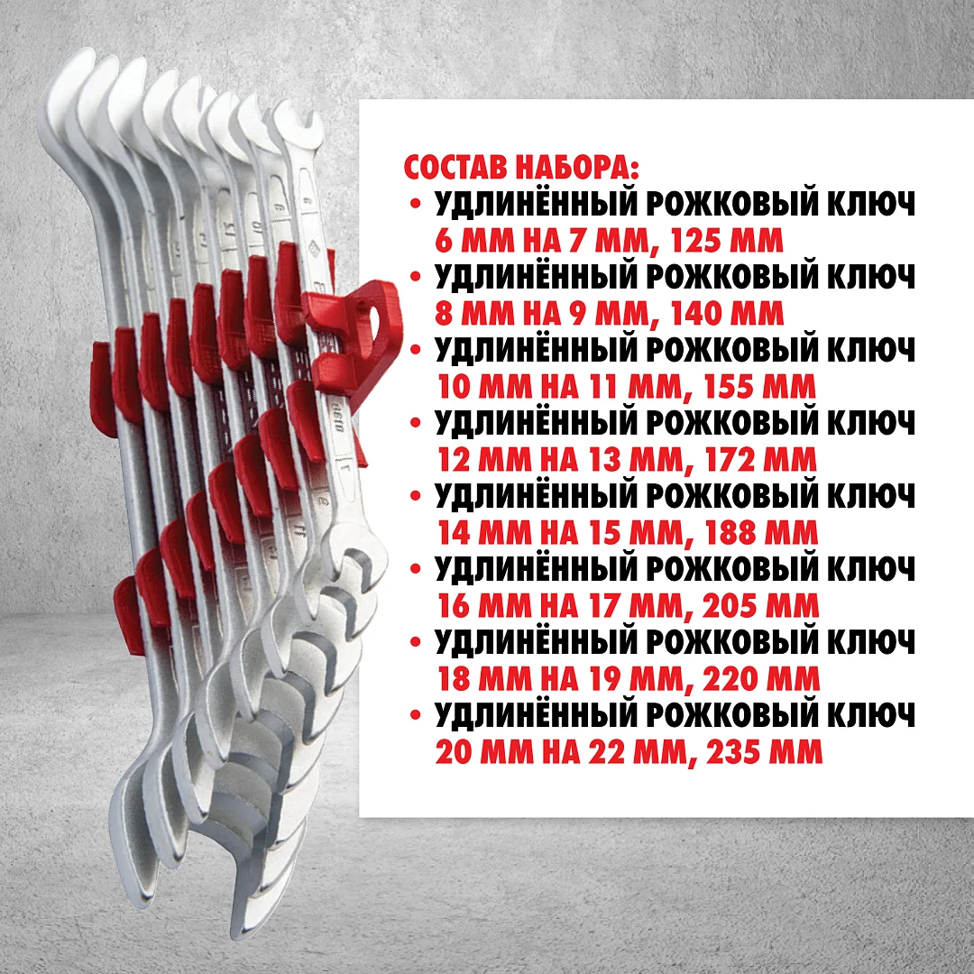 Набор ключей рожковых удлиненных 6-22 мм 8 предметов IZELTAS