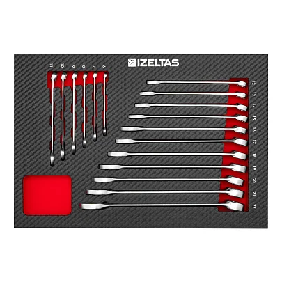 Набор комбинированных ключей 6-22 в ложементе карбон 17 предметов, габариты 274х400х30, IZELTAS
