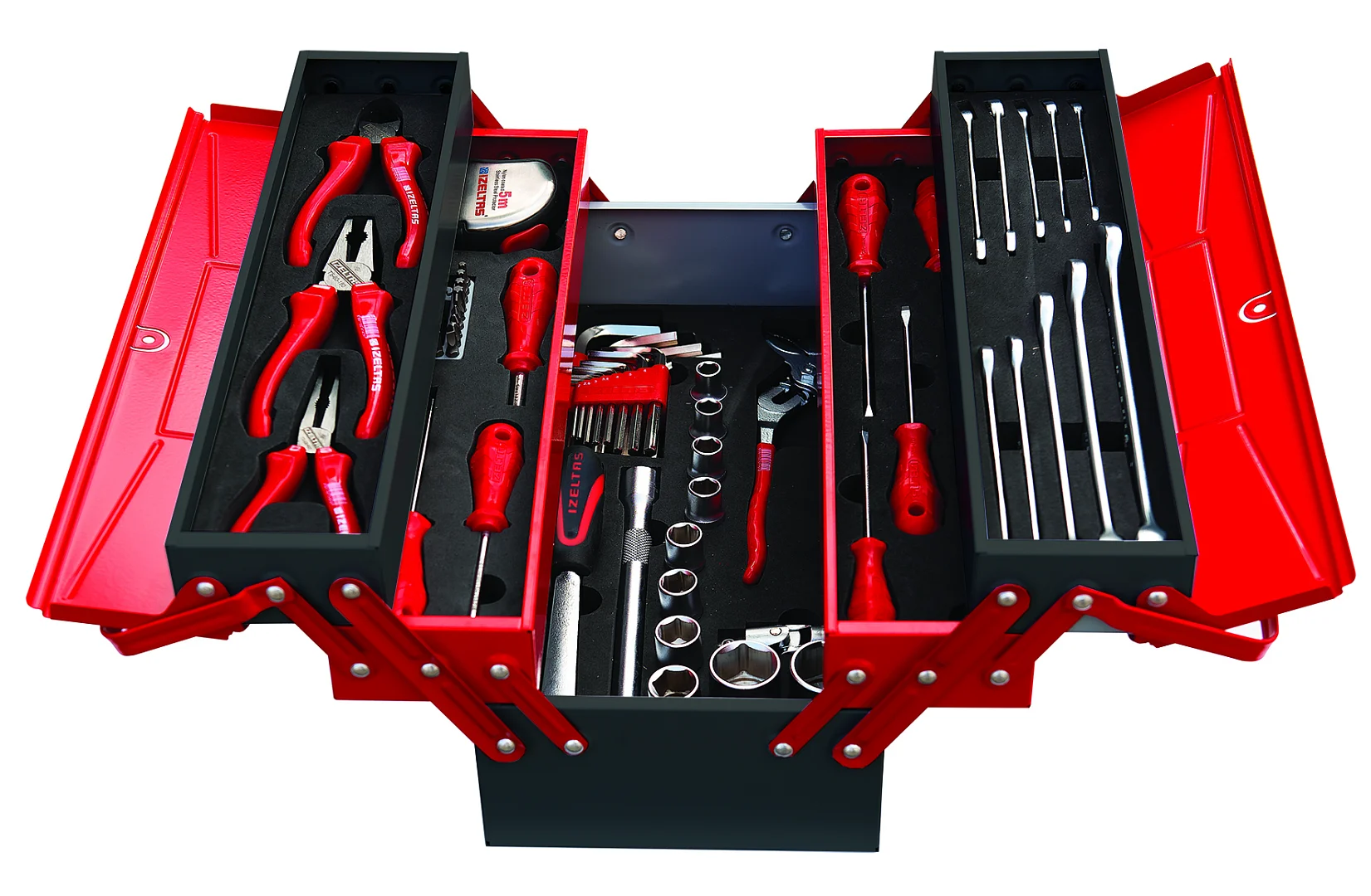 Ящик раскладной с инструментами (набор для механиков), металлический, 62 предметов, 190х420х200, 5 секций, IZELTAS, 8420005063, 13000002568