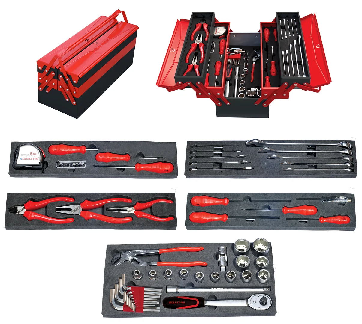 Раскладной ящик с инструментами для механиков, 62 предмета İZELTAŞ