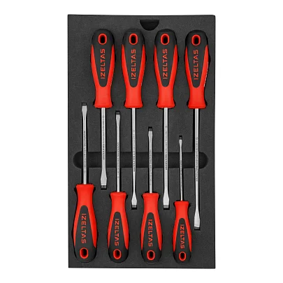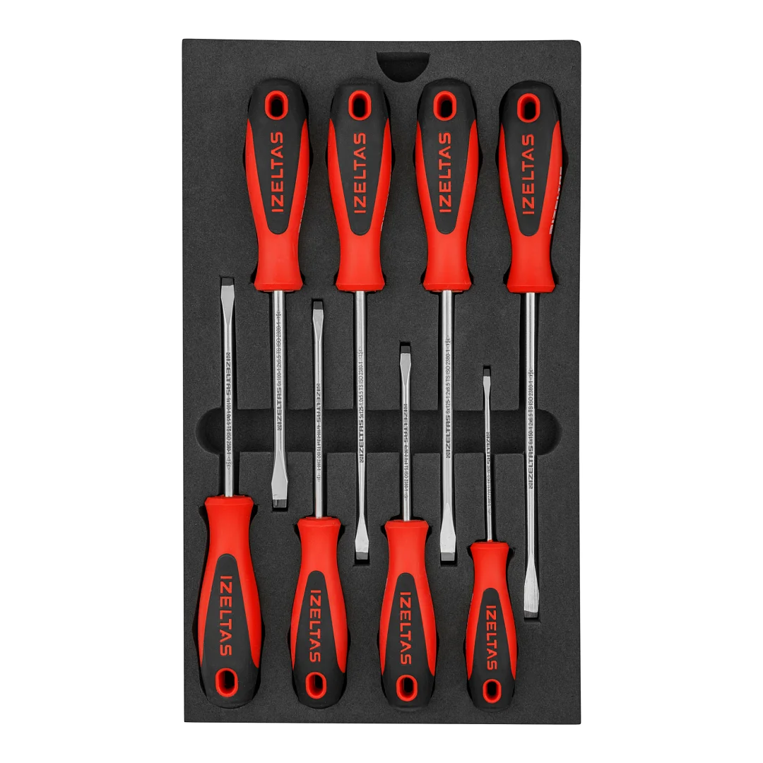 Набор отверток ERGONOMIK в ложементе, прямой (SL) шлиц, двухкомпонентная рукоятка, 8 предметов, IZELTAS, 4350008108