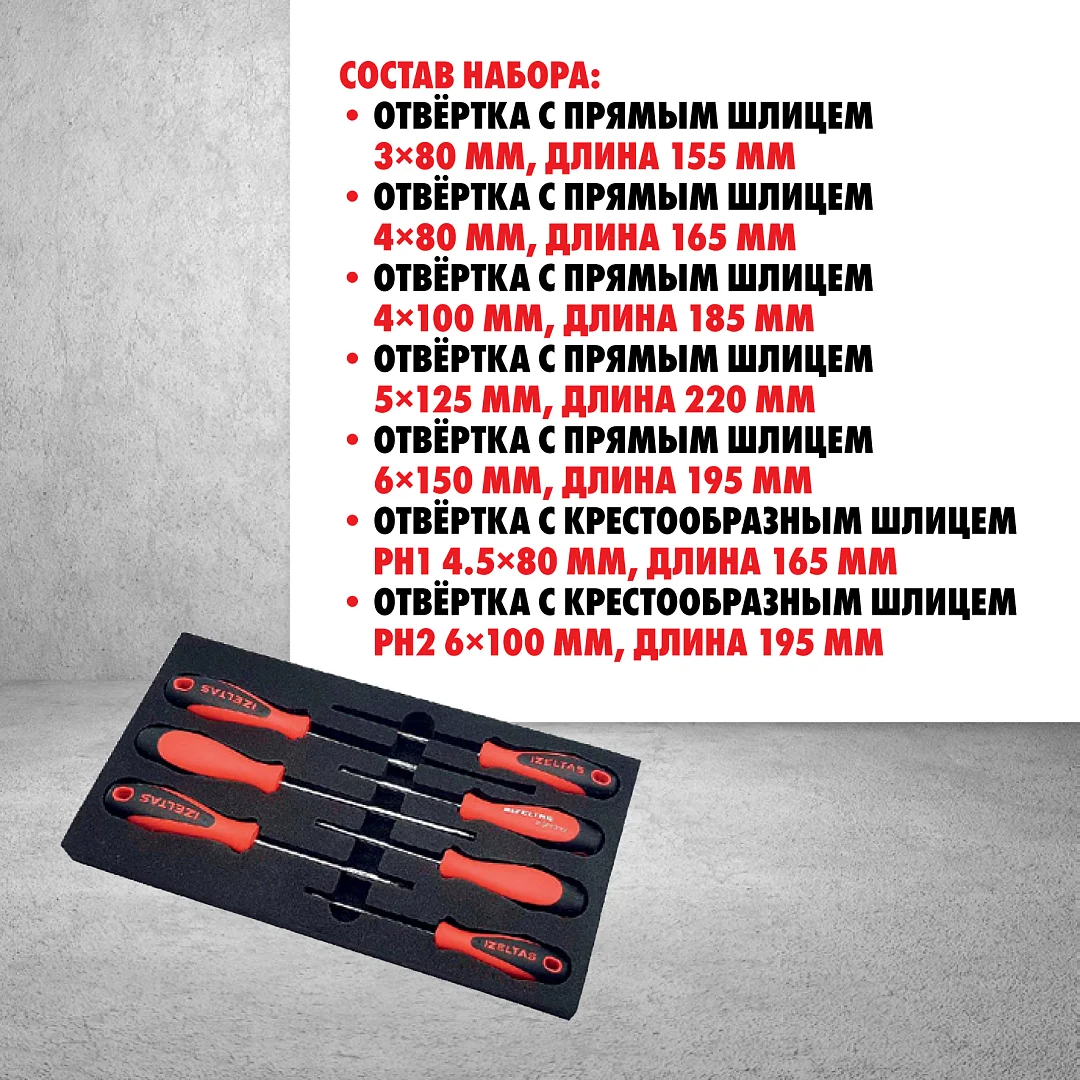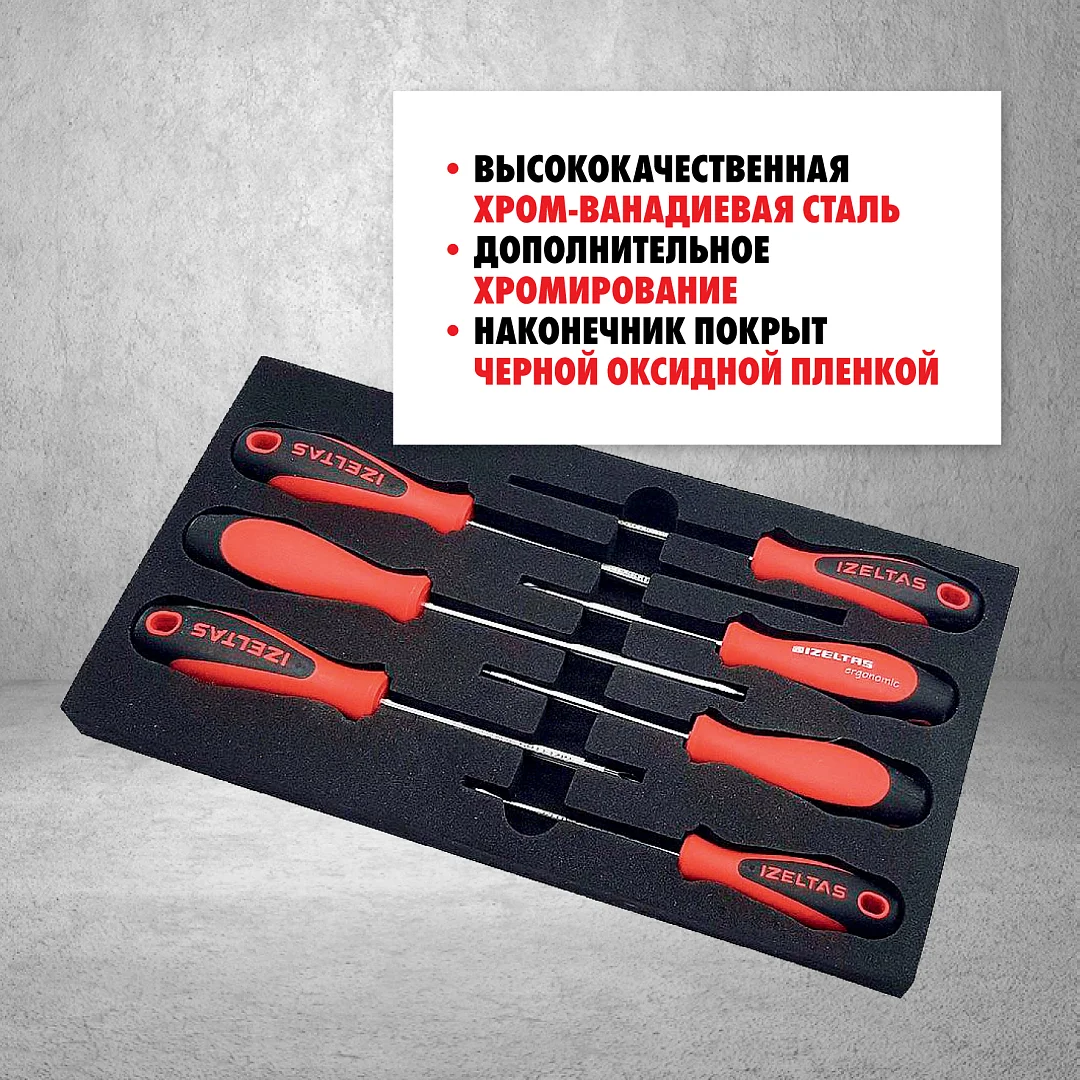 Набор отвёрток IZELTAS серии ERGONOMIK в картонной коробке