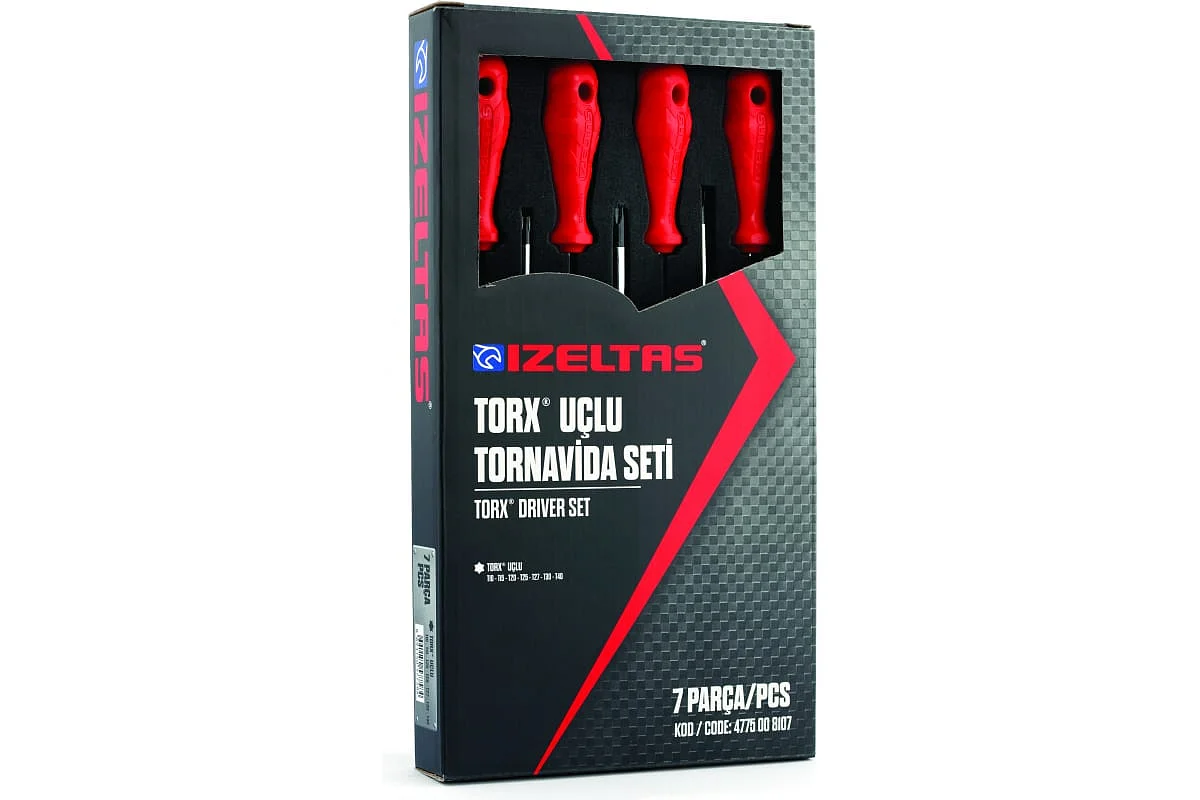 Набор отверток со шлицем TORX (Tx10-Tx40), рукоятка из полипропилена, 7 предметов, IZELTAS, 4775008107, 13000001533