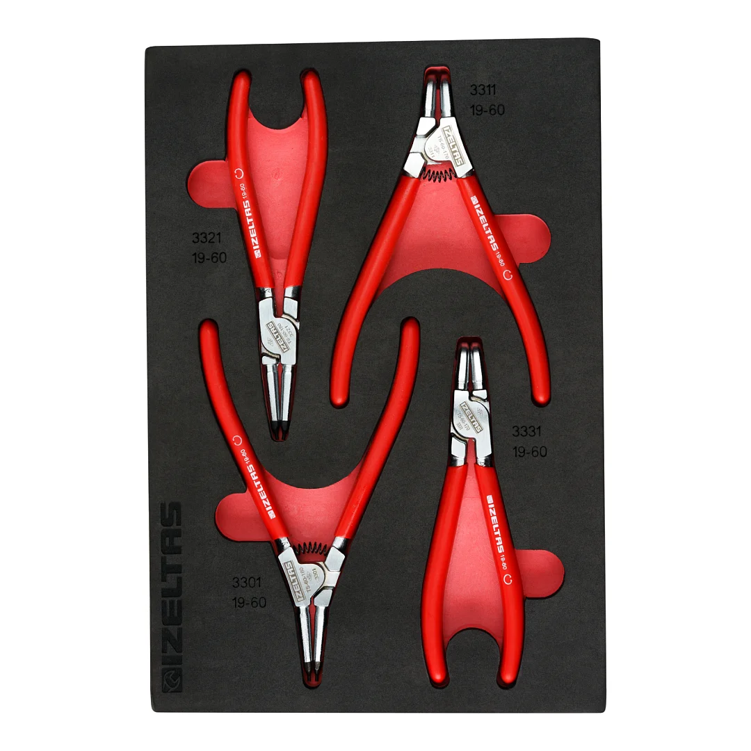 Набор съемников стопорных колец 19-60 в ложементе 4-ре предмета, габариты 230х335, IZELTAS, 2965905602