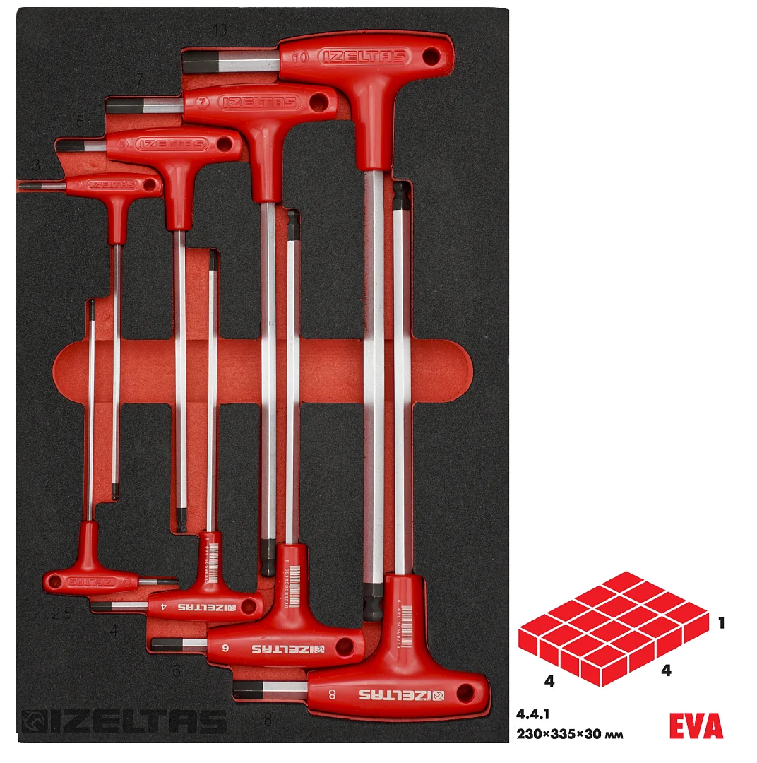 Набор шестигранных ключей ш, г с т-рукояткой в ложементе 8 предметов, габариты 230х335, IZELTAS, 2965905510