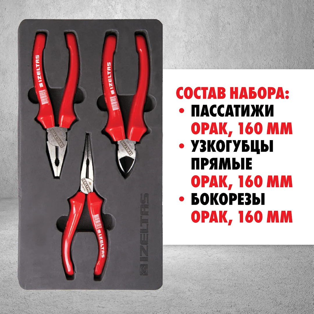 Набор шарнирных инструментов, 3 предмета в ложементе IZELTAS, 3020002003, 13000001101