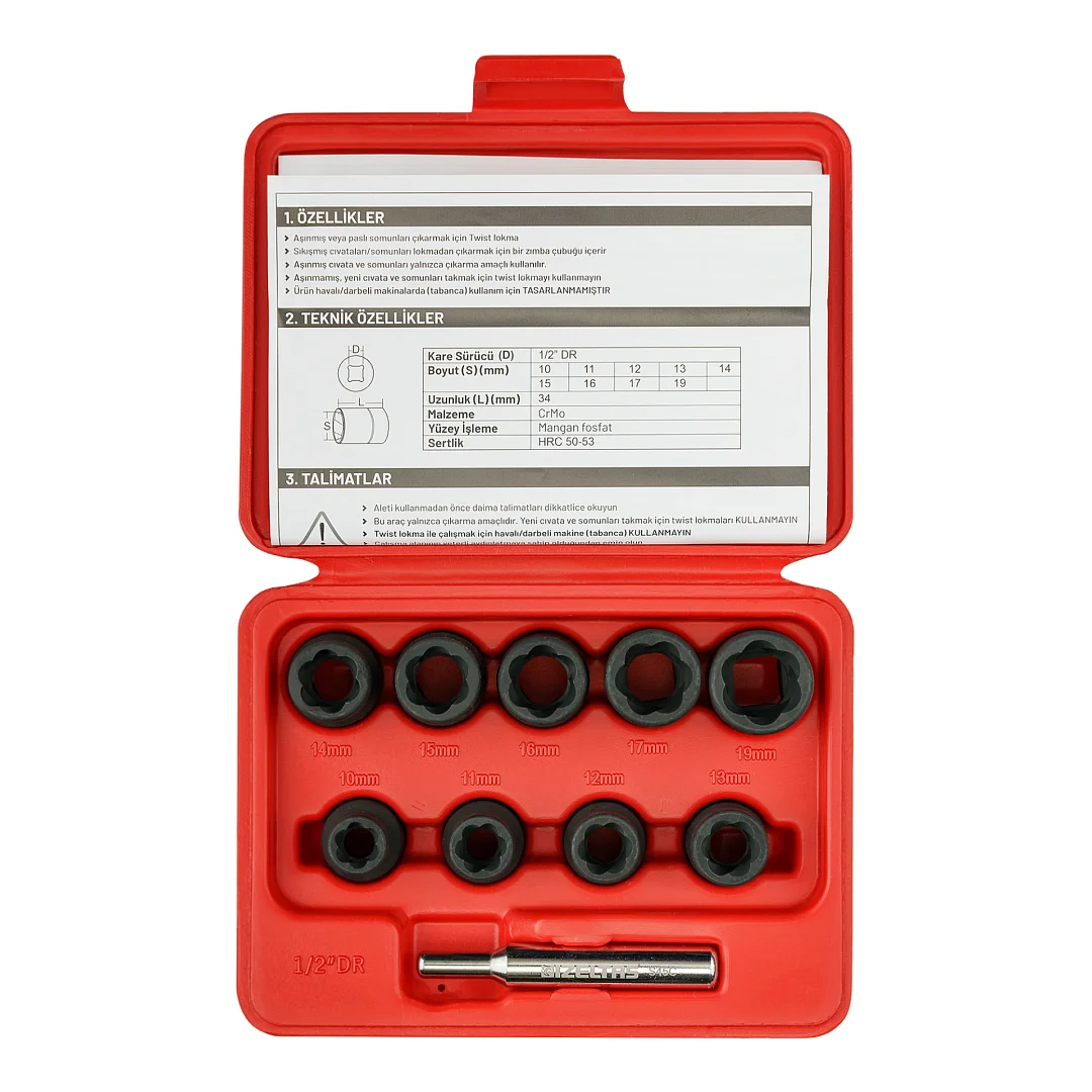 Набор торцевых головок 1/2" для поврежденных болтов и гаек 10-19 мм, IZELTAS, 14000005130