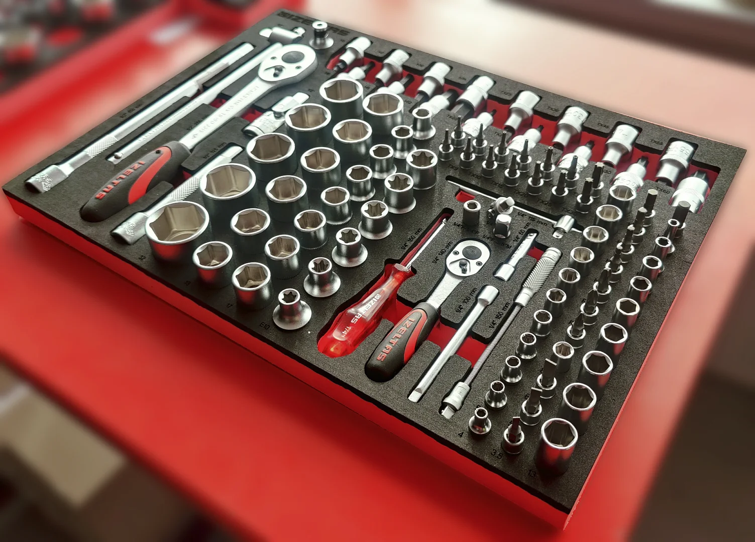 Пустой ложемент EVA, красно черный, для торцевых головок 1/2"+1*, 4" 102 предмета, габариты 462X335, IZELTAS, 2955905922