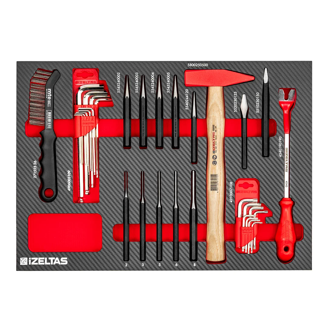 Набор ударного инструмента в ложементе карбон 500x350х30мм 17 предметов IZELTAS