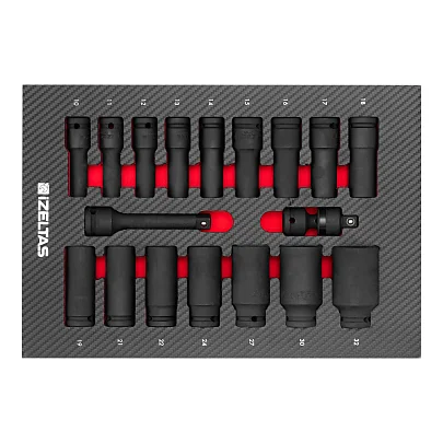 Набор усиленных удлиненных головок 1/2" в ложементе карбон 274x400х30мм 18 предметов IZELTAS