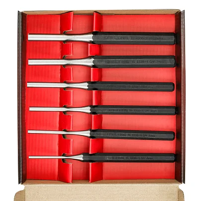 Выколотки изготовлены из высококачественной Хром-ванадиевой стали согласно Din6450