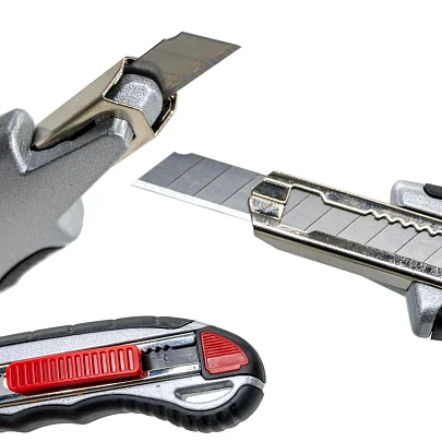 Фиксация лезвия при помощи защелки, что позволяет удобно работать одной рукой.
