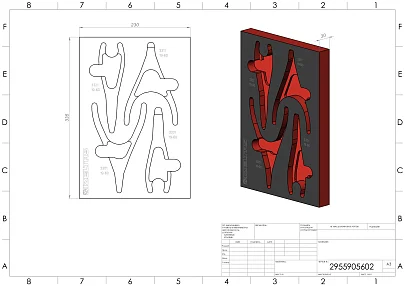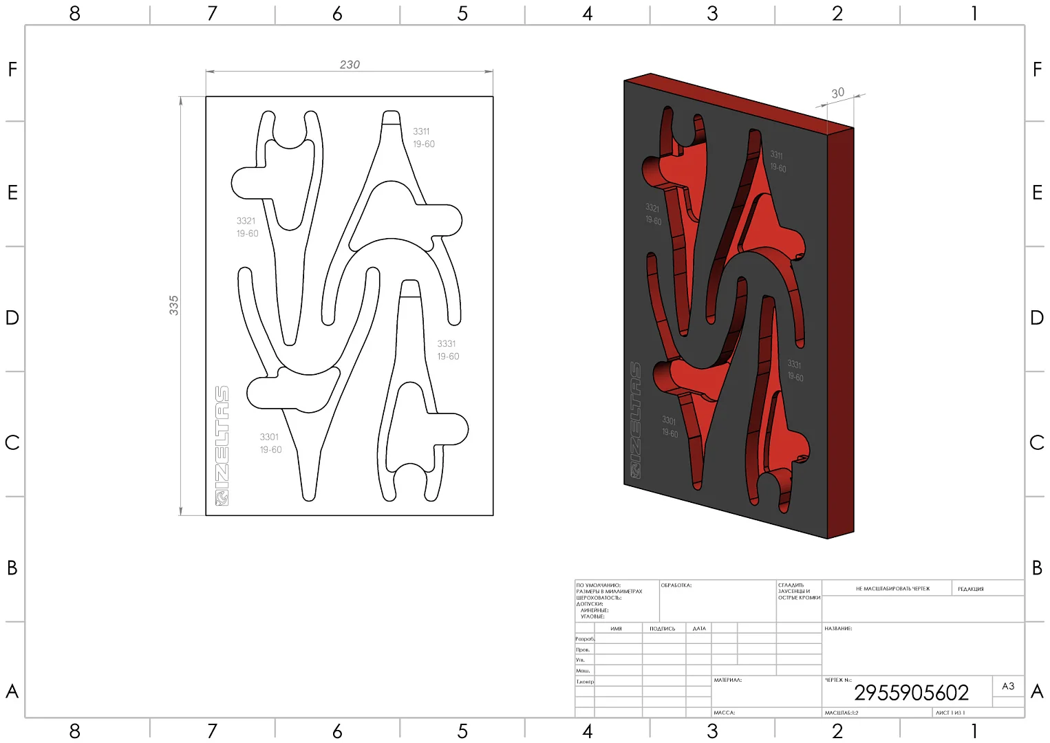 Пустой ложемент EVA, красно черный, для набора съемников стопорных колец 19-60 4-ре предмета, габариты 230х335, IZELTAS, 2955905602